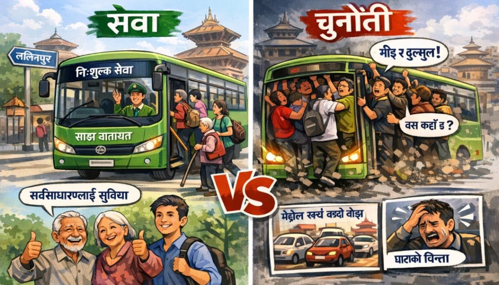 चिरिबाबु महर्जन नेतृत्वको ललितपुर महानगरपालिका ले सार्वजनिक यातायात क्षेत्रमा ठूलो बहस सिर्जना गर्ने प्रस्ताव अघि सारेको छ। महानगरभित्र सञ्चालन हुने साझा यातायात का बसहरूलाई पूर्ण रूपमा निःशुल्क बनाउने योजना सार्वजनिक भएपछि यसले सेवा र दिगोपनबीच सन्तुलनको प्रश्न उठाएको छ।